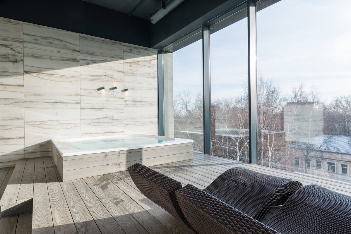 Мне особенно нравится СПА-зона днем, в это время нет народа. Она оборудована хамамом, сауной - это то, что мне нужно, все в хорошем состоянии. Перед СПА я самостоятельно занимаюсь силовыми упражнениями на тренажерах. Тренировка моя длится 45 минут, я себя не нагружаю.