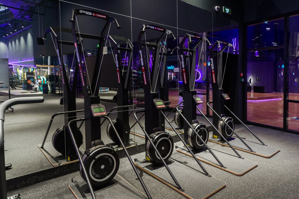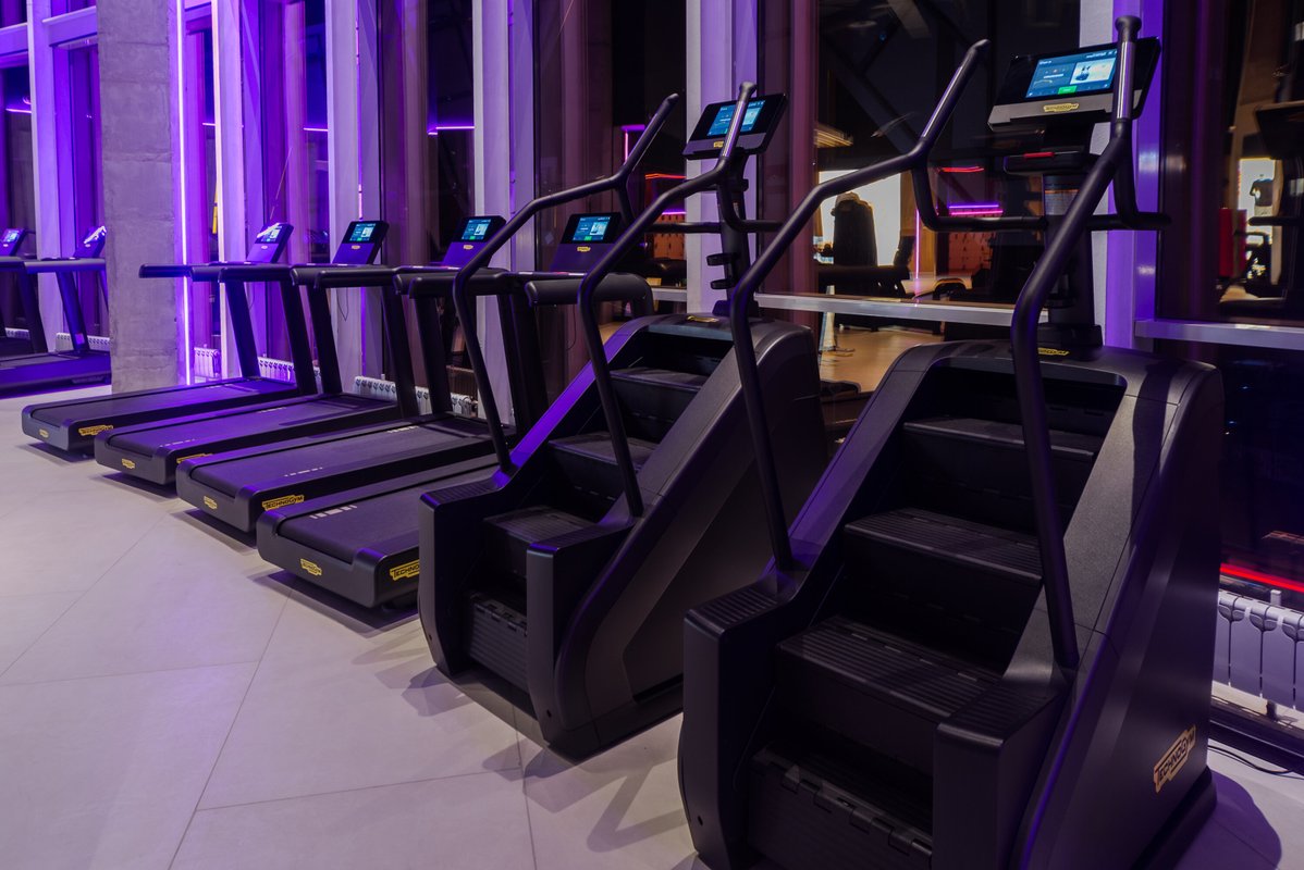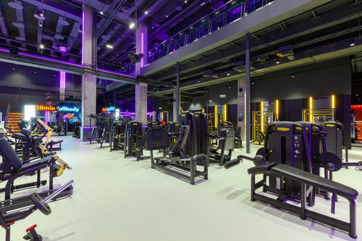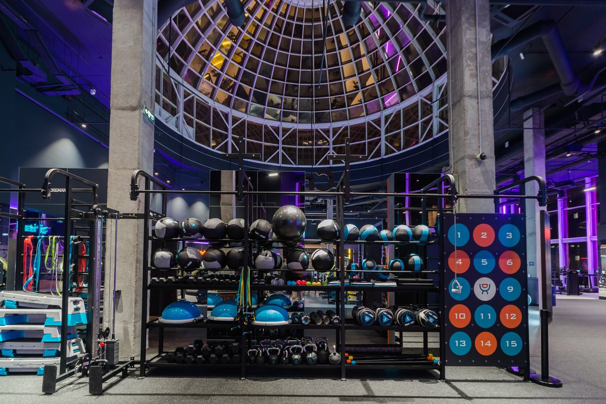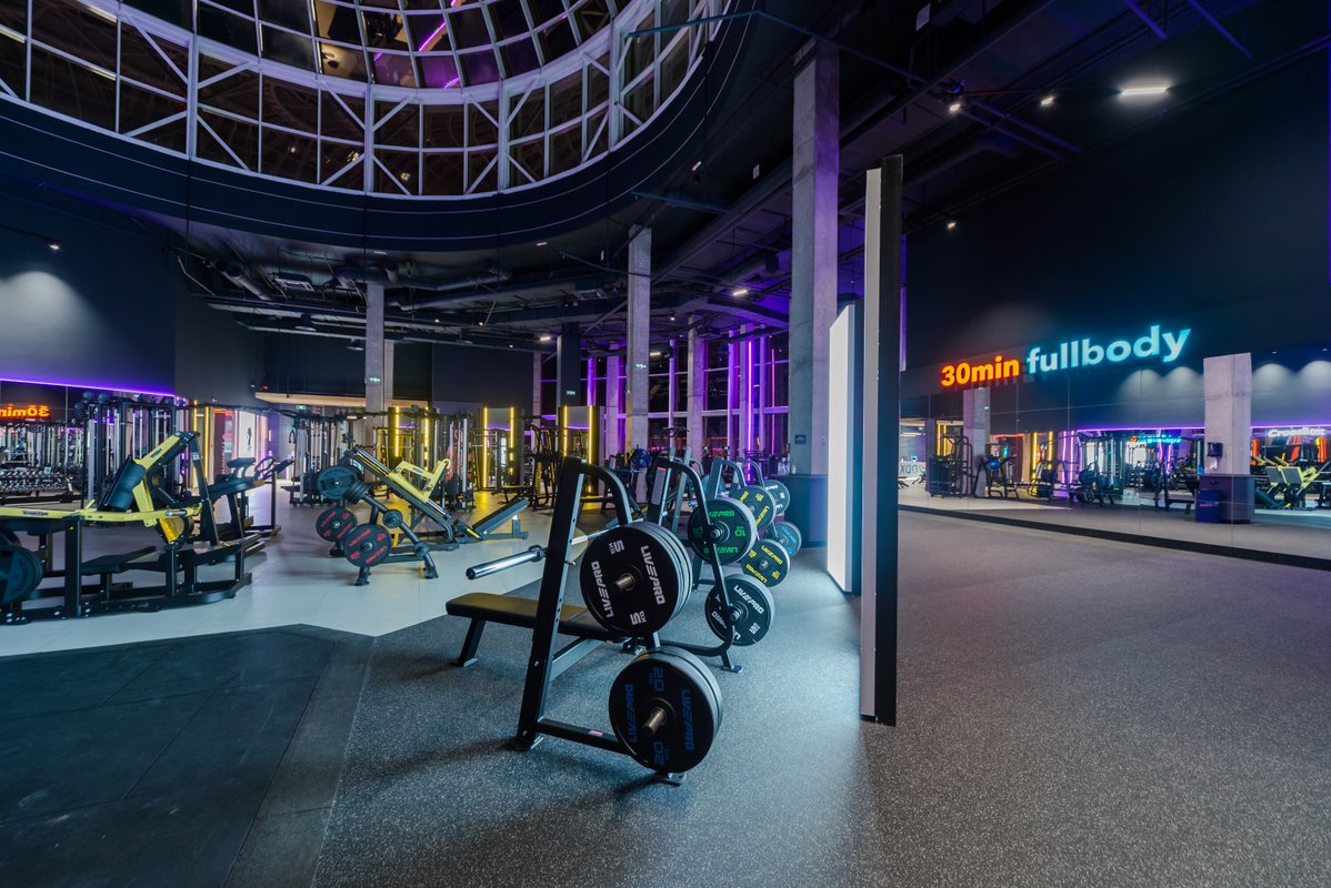 Визуал и состояние тренажеров отличное, не тесно и пока нет очередей. Уникальную атмосферу клубу предают панорамные окна и стеклянная крыша